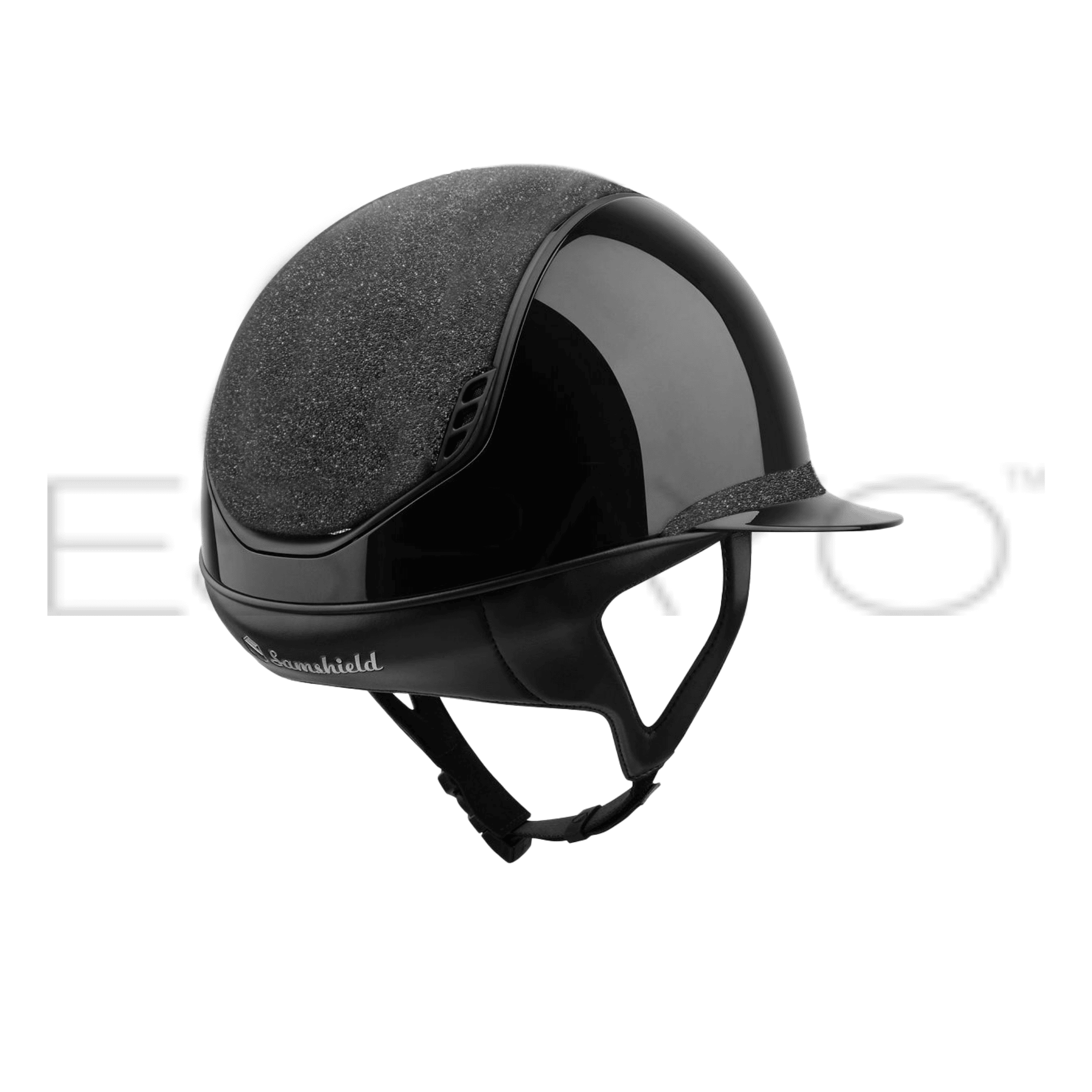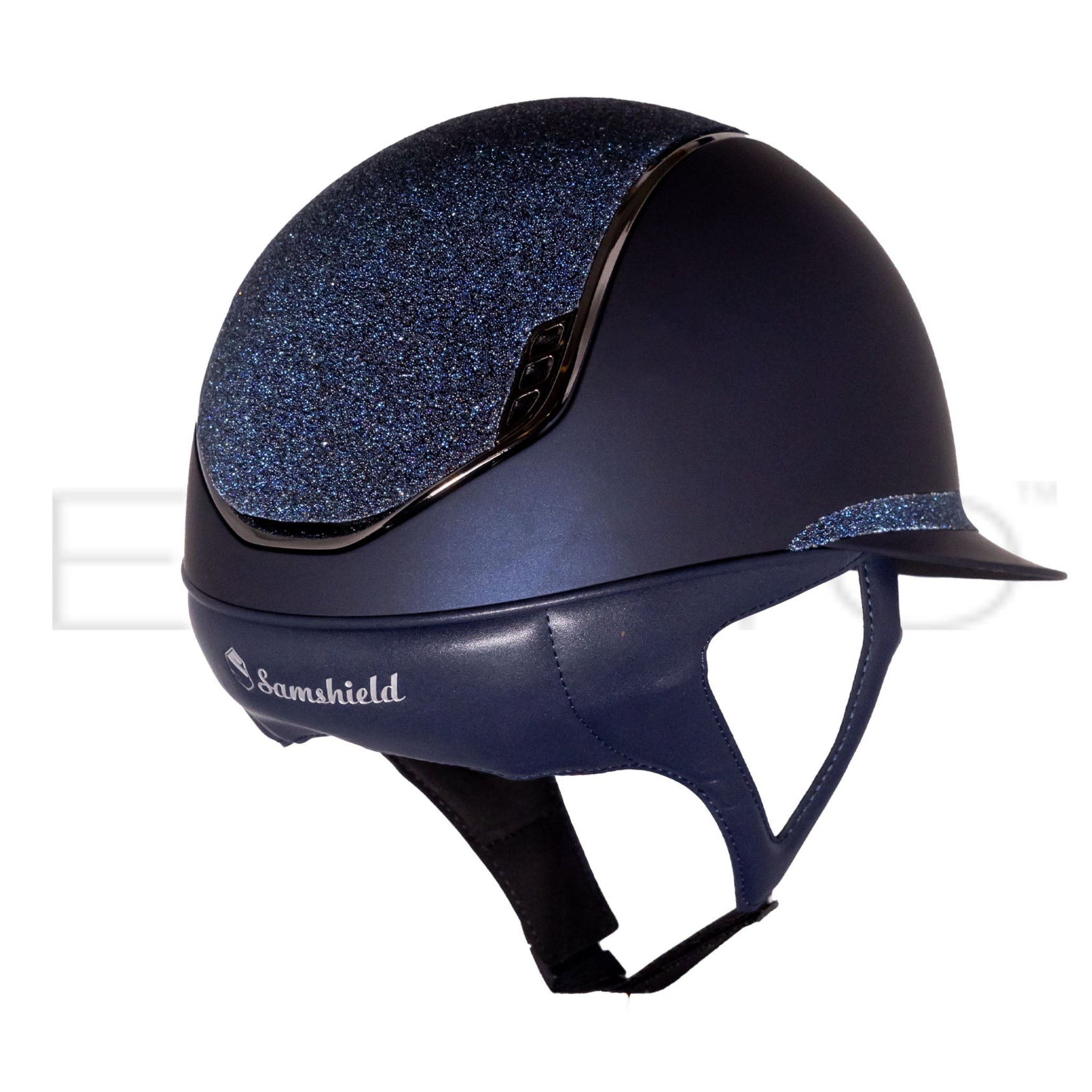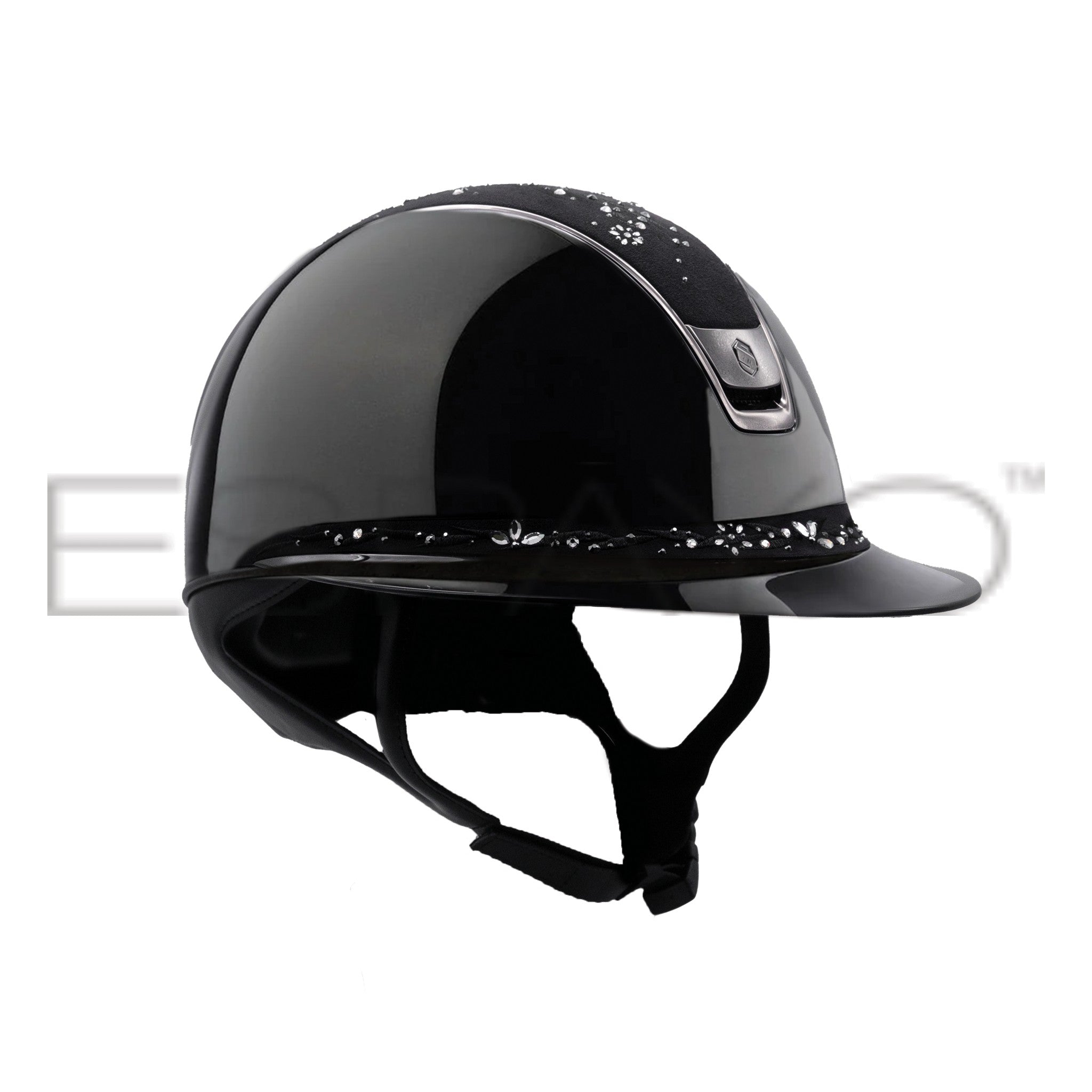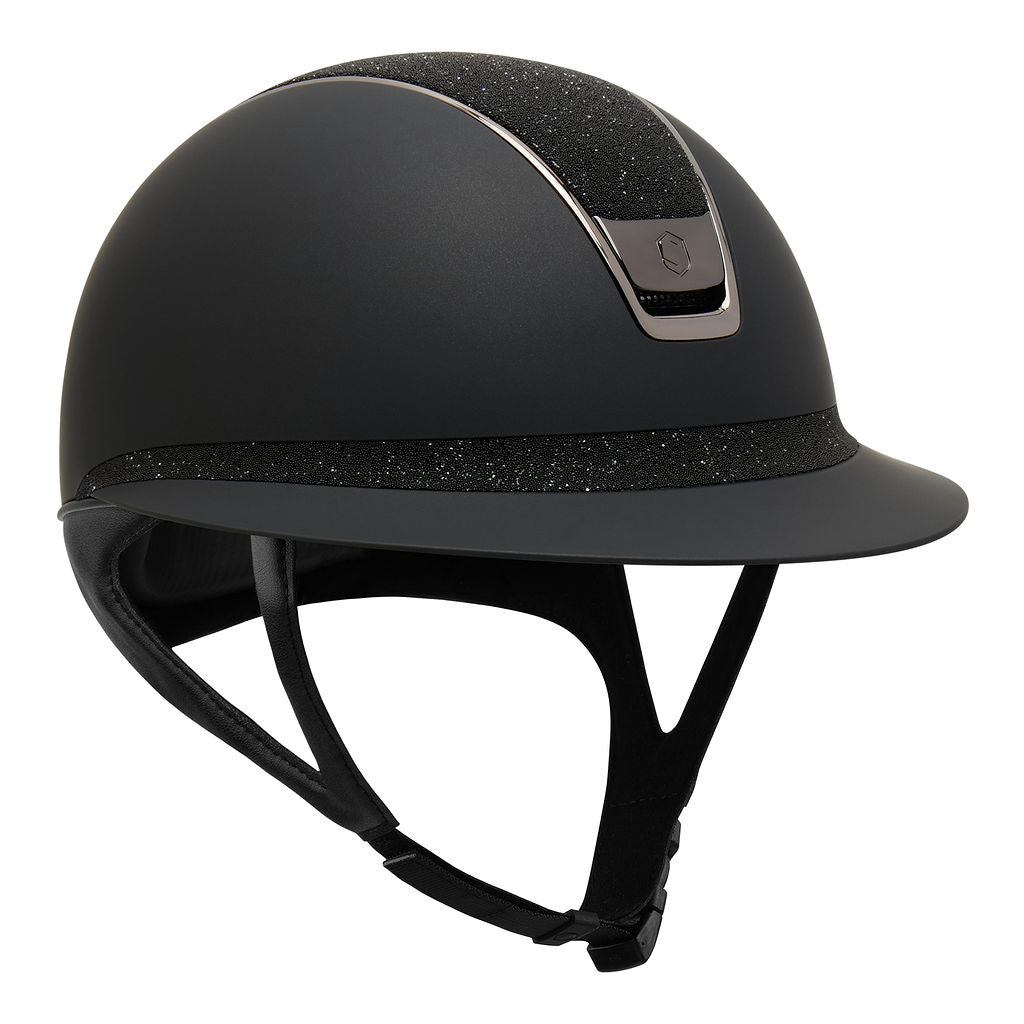 Samshield Miss Shield Shadowmatt 2.0 Riding Helmet Crystal Fabric Top & Front Band, Black Chrome Trim & Blazon