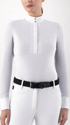 Step up your kit with the Equiline Ladies Golk Long Sleeve Polo Competition Shirt by Equiline. It blends comfort and ready-to-ride practicality for ladies riders.