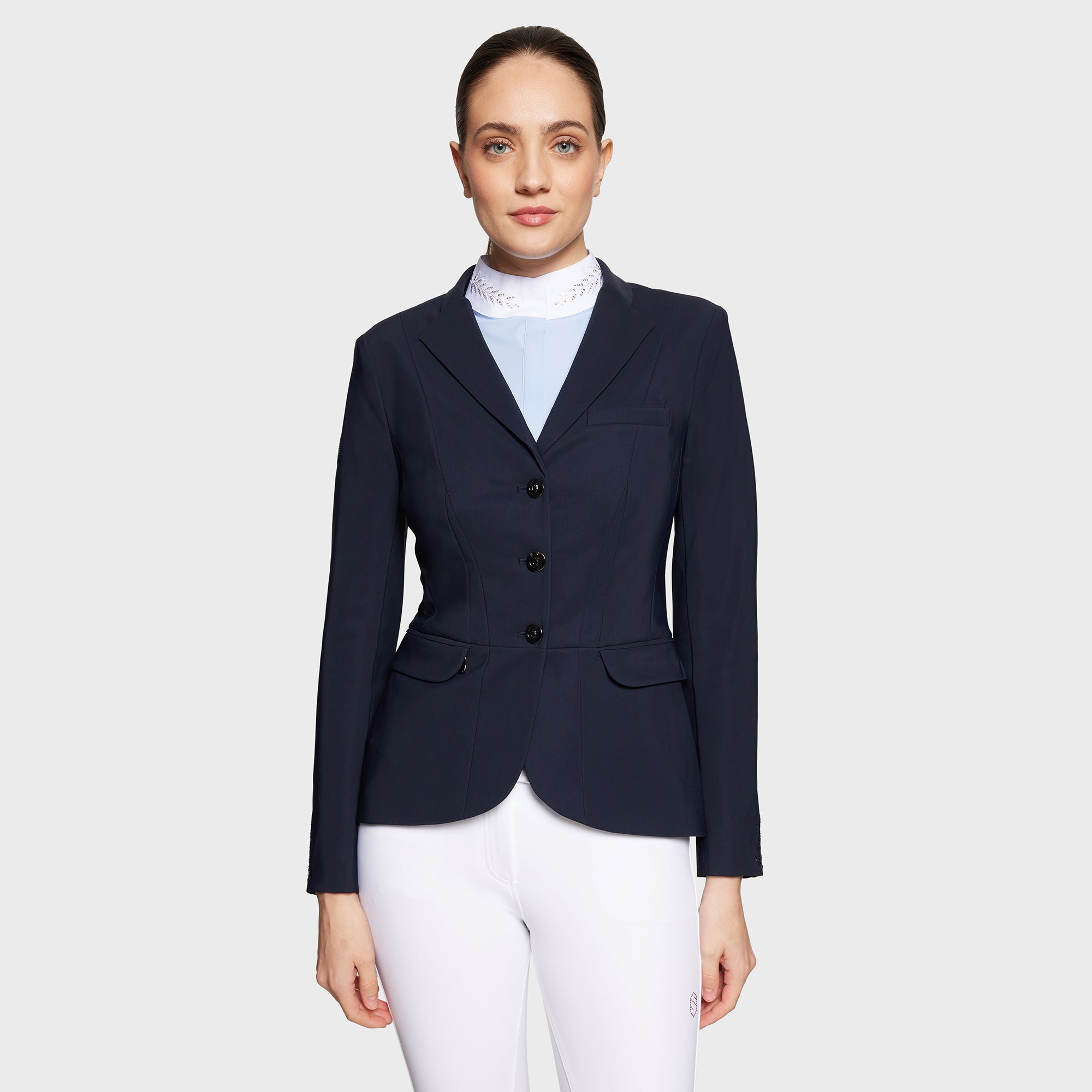 Victory Flower women's equestrian competition jacket. Ideal for riders looking for detailed foral style, performance and durability in shows and competitions, with 3 buttons.