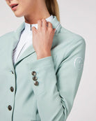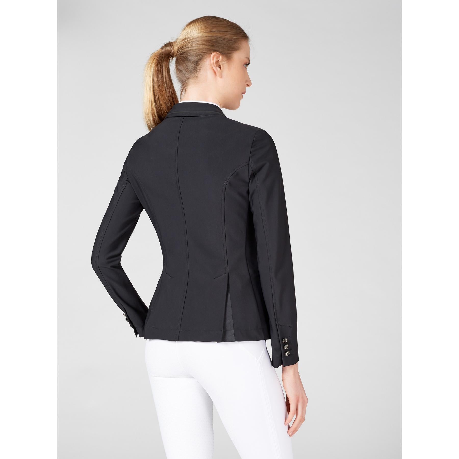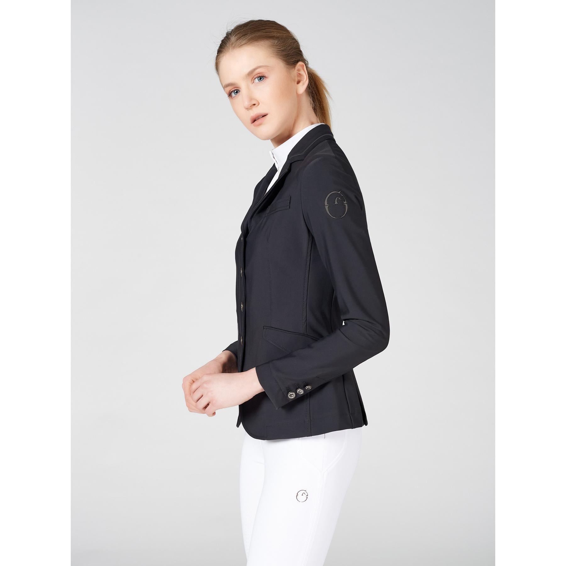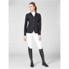 The Vestrum Canberra ladies jacket is another in a long line of Italian equestrian chic. This classically tailored, unlined competition jacket is made from a strong, bi-stretch knitted fabric which is also soft enough to guarantee freedom of movement. It has a front zip closure, hidden behind a row of four Vestrum logoed buttons, a rectangular cut flap pocket on both sides, a top chest pocket, three buttons on each cuff and two back vents. On the upper left arm there is a Vestrum logo in contrasting colour, a look that is continued around the collar. Perfect for wear all year