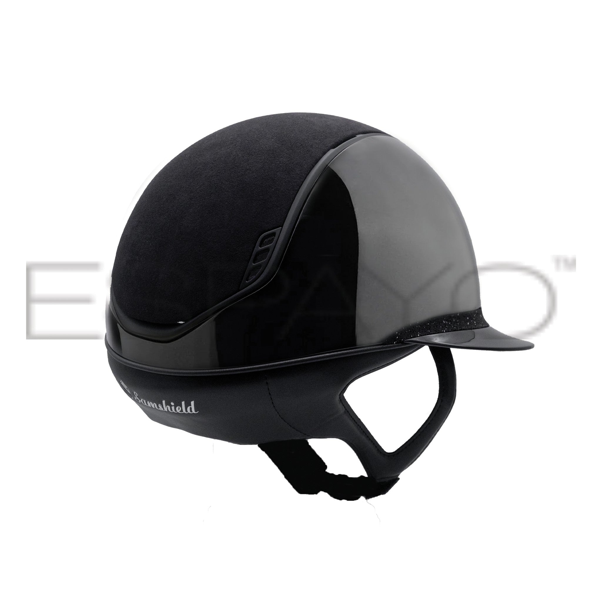 Samshield Miss Shield Shadowglossy 2.0 Riding Helmet, Alcantara Top, Crystal Fabric Front Band, Matt Trim & Blazon