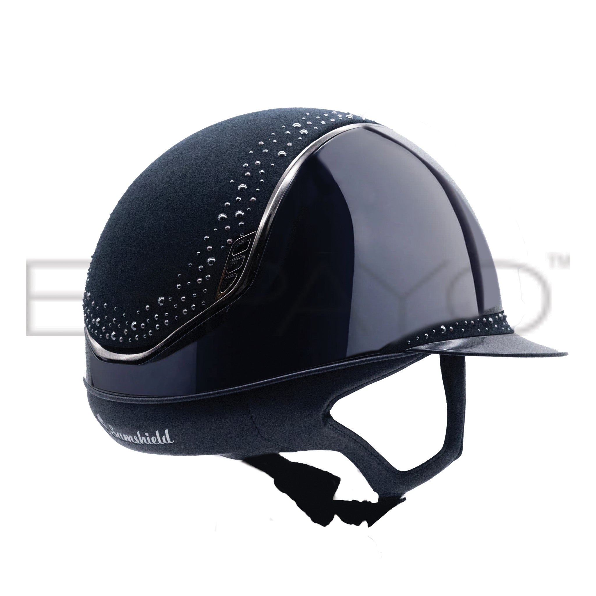 Samshield Miss Shield Shadowglossy 2.0 Riding Helmet, Night Pearl Top & Front Band, Black Chrome Trim & Blazon